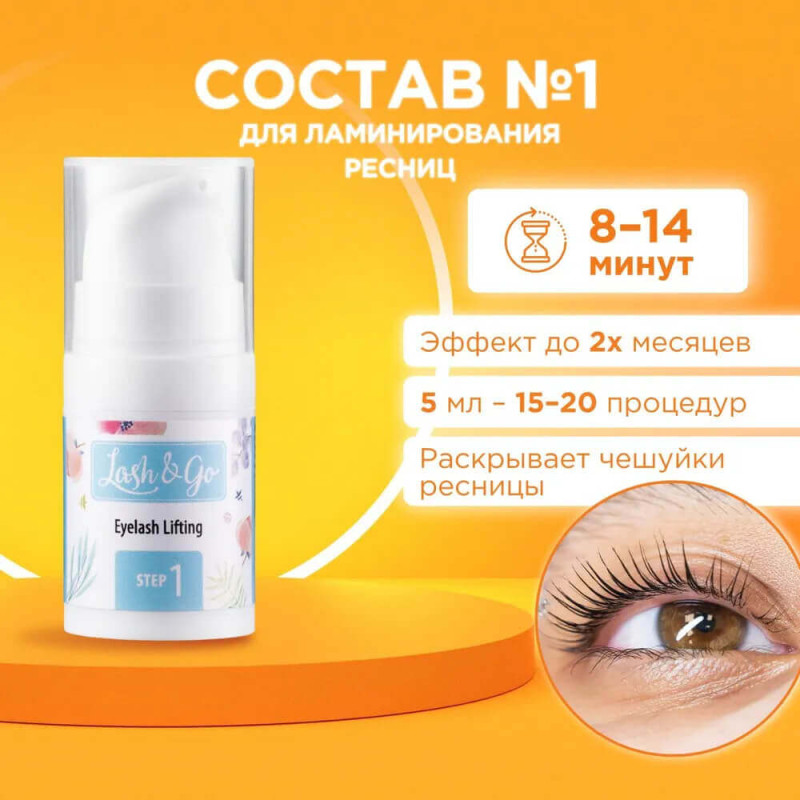 Состав для ламинирования Lash&Go №1 во флаконе, 5 мл — идеальный вариант для старта карьеры ламимейкера или в случае, если вы хотите перейти на более доступные и при этом качественные материалы.