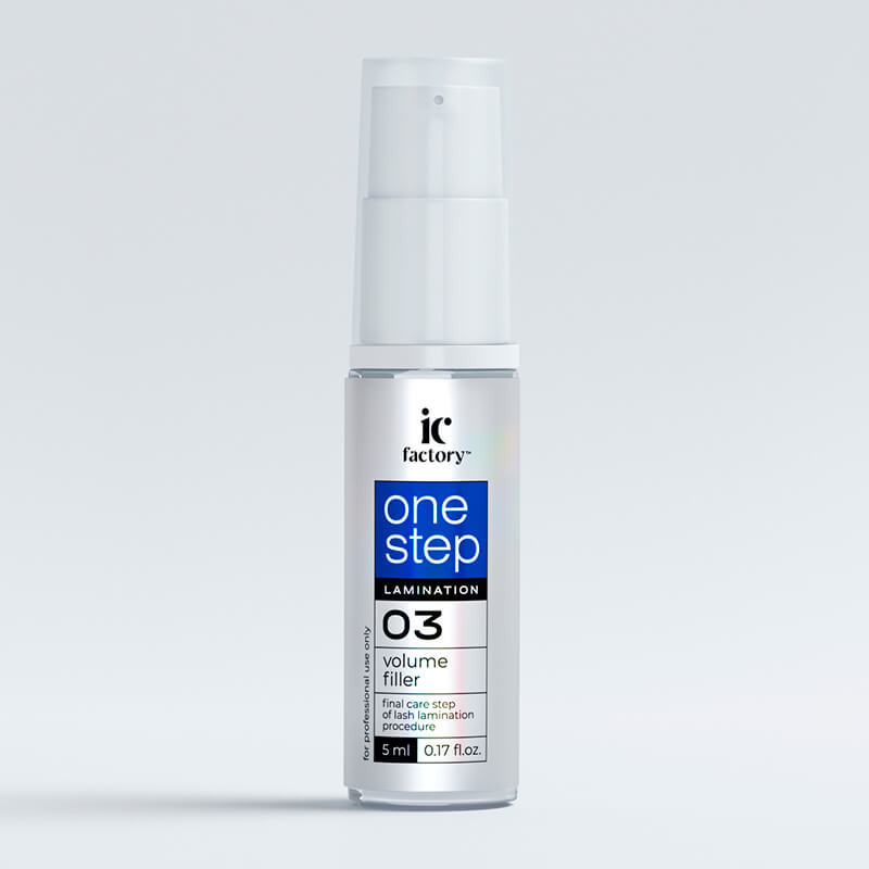 Состав для ламинирования ресниц ONE STEP VOLUME FILLER IC FACTORY используется на финальном этапе процедуры в качестве ухода, восстановления и защиты ресниц. Увеличивает объем и придает блеск волоскам.