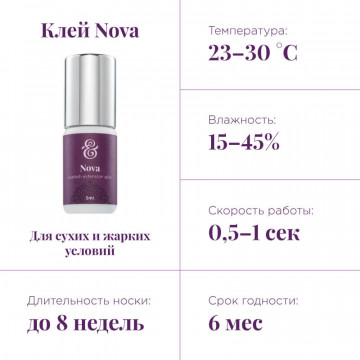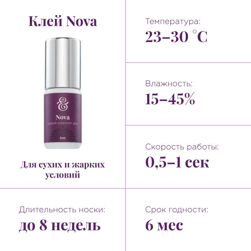 Профессиональный черный клей ENIGMA Nova для наращивания ресниц для сухих и жарких условий. Подходит для мастеров с опытом, полимеризуется за 0,5-1 секунду и помогает работать быстро, не теряя времени. Отлично работает при температуре воздуха 23-30 °С и влажности 15-45%. Средняя эластичность и жидкая консистенция удобны в работе, клей не растекается, расходуется экономно. В составе более безопасный цианоакрилат, что позволило снизить испарения. ENIGMA NOVA надежный и стойкий клей обеспечивает носку ресниц до 8 недель.