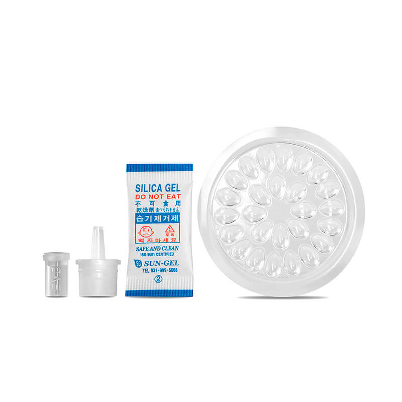 Rili FOXY представлен в объемах 3 и 5 мл в термопакетах, в которые входят: временная пробка с иглой, сменный носик, лунка для клея и силикагель, который поможет мастерам поддерживать оптимальные условия хранения.