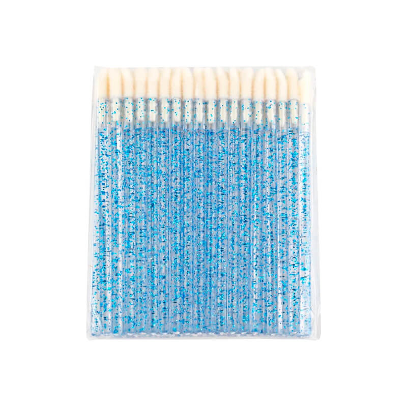 Щеточки косметические (голубые блестки) 50 шт / Аппликаторы для губ