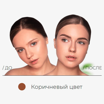 Светло-коричневый цвет имеет теплую основу, подходит для светловолосых и теплых типажей – золотистый блонд, карамельный, светло-рыжий. Идеально ложится на очень светлые брови и пушковые волоски. В чистом виде окрашивание получается неярким и естественным. Для того чтобы сделать оттенок насыщеннее, добавьте 30% коричневого цвета.