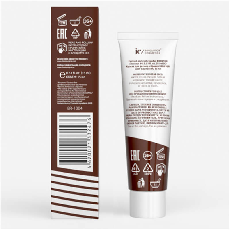 Краска для бровей и ресниц BRONSUN №4, каштан - смена дизайна
