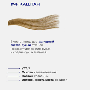 Каштан #4 — в чистом виде дает холодный светло-русый оттенок, идеально подходит для окрашивания бровей светло-русых и средне-русых типажей.