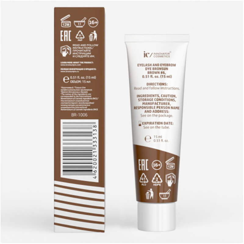 Краска для бровей и ресниц BRONSUN №6, коричневая - смена дизайна