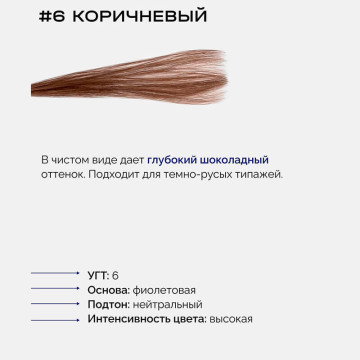 Коричневый #6 — в чистом виде дает глубокий шоколадный оттенок. Подходит для темно-русых типажей.