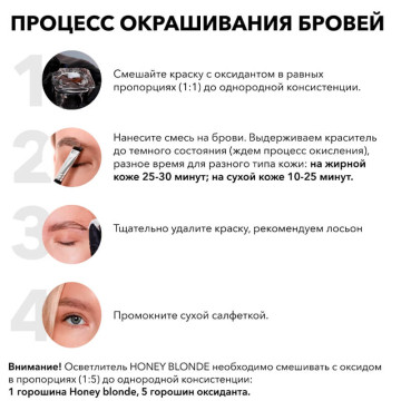 Красители холодный светло-коричневый и холодный темно-коричневый рекомендуем добавлять в базовую линейку красителей (светло-коричневый и коричневый) вместо графита. Они добавляют более холодный оттенок, если нужно, но не делают оттенок излишне темным, в отличие от графита. Цвет на волосках от этих красителей держится дольше. Красители после использования практически не оставляют оттенка на коже.